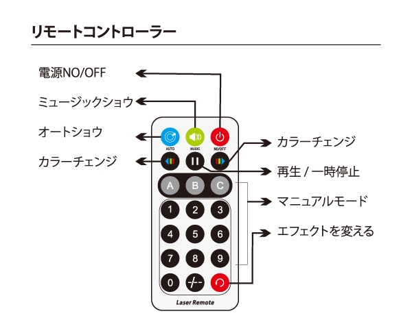 ・ RED・GREEN2 色による多彩なエフェクトレーザーです